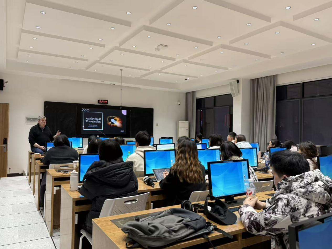 我院邀请来自英国贝尔法斯特女王大学艺术英语与语言学院翻译与口译中心的翻译学教授、欧洲科学院院士、舞台剧翻译家David Johnston在腾龙楼604为MTI学生讲授“多模态视听翻译”(AUV)课程,开启了中英师生多视角了解多模态视听翻译之旅。David Johnston教授主要研究翻译实践中,尤其是戏剧翻译过程中理论、实践及伦理之间的关系,研究成果颇丰,被《喜剧表演》期刊誉为“二十一世纪最具创...