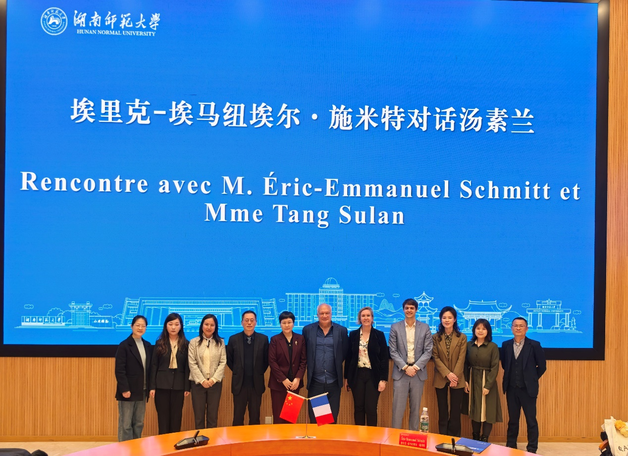 第六届龚古尔文学奖中国评选系列活动的第一场活动“埃里克-埃马纽埃尔·施米特对话汤素兰”在我校图书馆报告厅举行。活动由法国驻武汉总领事馆主办,为我校国际交流合作处2026年“精勤讲堂——国际名师讲座”第一讲,由我院承办,是2026年“法语活动月”的重要组成单元。此次活动以“创作、创造、创新”为主题,特别邀请法国龚古尔学院院士、著名作家埃里克-埃马纽埃...
