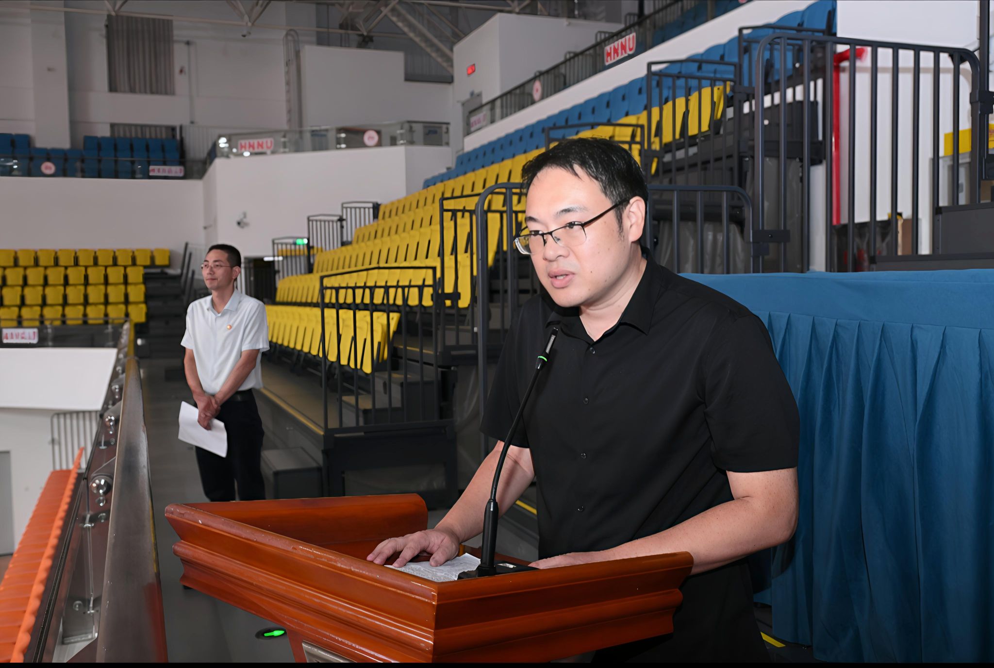 (通讯员 江婷 徐若曦)9月15日晚,我院在江湾体育馆隆重举行2025级新生开学典礼。院长曾艳钰,院党委书记沈贤岚,党委副书记莫南以及副院长刘白、蒋莉华、司徒皓、梁斌,院党委专职组织员易小源,各系(部)主任、教师代表、学工办全体辅导员等一同出席典礼。开学典礼由学院副院长梁斌主持。