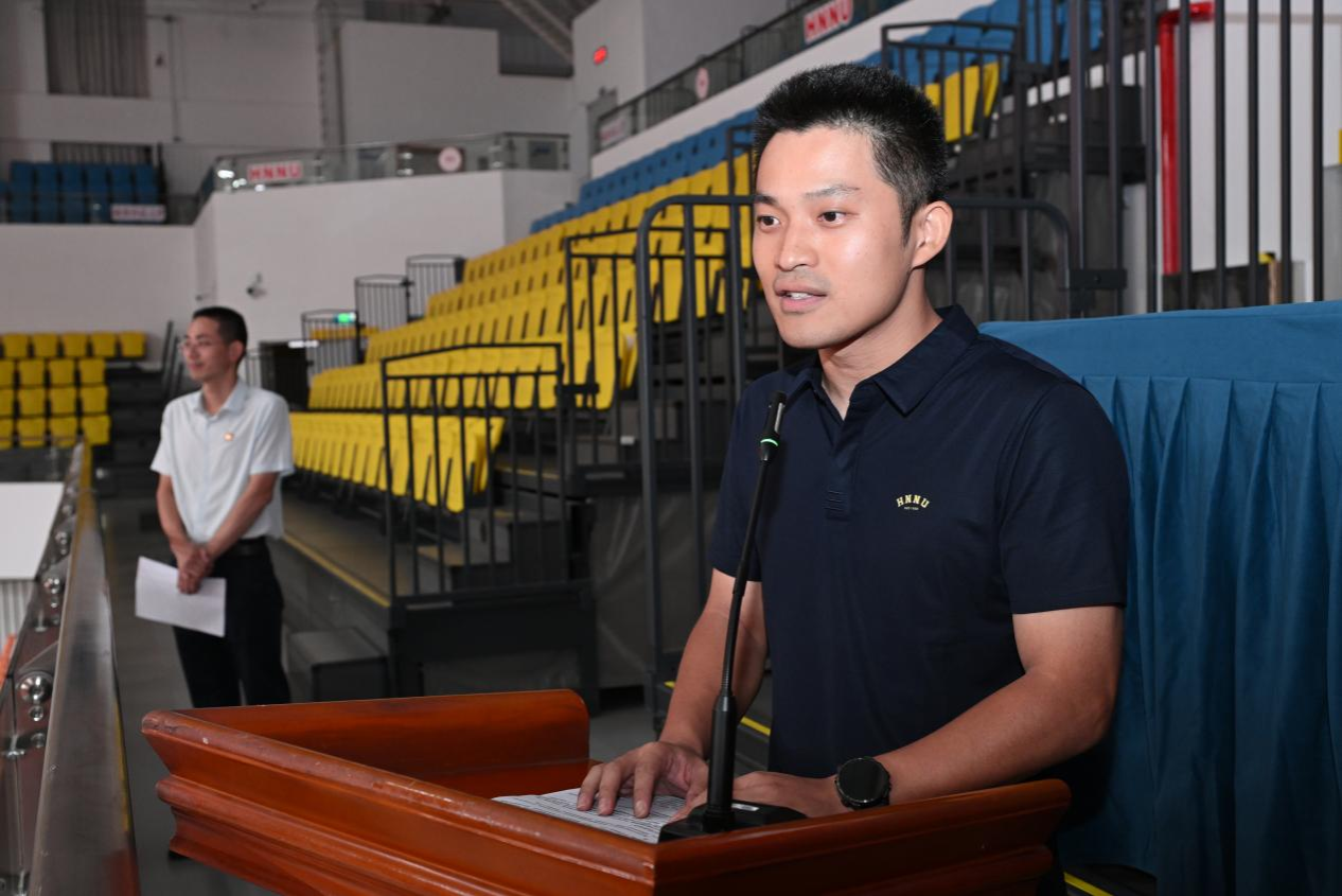 校友代表、2012级英语专业肖添宇老师则分享了在我院四年的本科求学历程,肯定这段时光对其日后工作发展的基石作用。他叮嘱新生认真对待每一堂课、每一场讲座,提醒新生当下的学习积累终将成为未来成长的“养分”。他以“外语人既要能走出去看世界,也要能沉下来做学问”寄语新生,期待未来见证其成为我院的新骄傲。