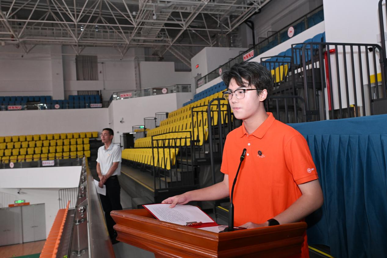 学生代表、2023级外国语言学及应用语言学方向硕士陆皓宇向新生分享四点体会。她希望新生拥抱变化,在探索中寻找热爱;深耕专业,在积淀中锤炼真本领;融汇中外,在包容中扩展视野;知行合一,在实践中书写青春。