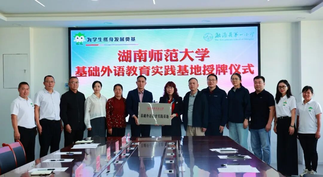 学院依托其“一流学科”的深厚积淀,于2019年获批建立“湖南省外语基础教育研究中心”(湖南省教育厅第六批高等学校哲学社会科学重点研究基地)。以此为基础,学院成立了“曾艳钰乡村外语教育创新工作室”,该工作室于2024年成功入选湖南省总工会重点支持的劳模和工匠人才创新工作室。基于这两大高端平台与学院的智慧教学设施,学院构思并启动了“湖南师范大学外语基础教育实践基地网络”建设。该网络采用“大学+政府+学校”协同共建模式,通过线上线下结合、设备捐助等方式,在全国范围内辐射设立实践基地。首轮五年建设已卓有成效:目前已在省内建成13所“乡村外语教育实践基地”,在省外建成4所“基础外语教育实践基地”。学院以这些基地校为支点,以点带面,持续为全国外语基础教育课程改革提供智力支持与实践示范,致力于构建具有中国特色的基础外语教学理论与实践体系,打造湖南师范大学外国语学院的基础教育品牌。