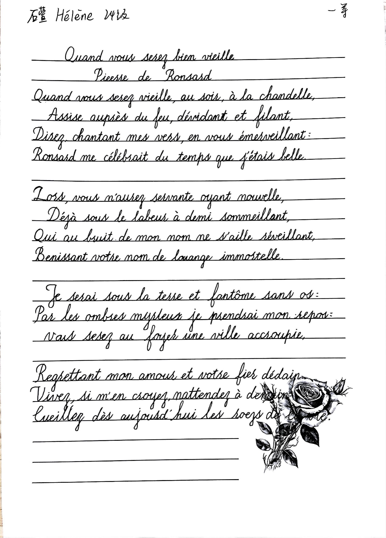 本次法语书写比赛不仅为同学们提供了一个展示自我、切磋技艺的舞台,也丰富了校园文化生活,增强了法语系的凝聚力,激发了同学们深入学习法语、探索法兰西文化的持续动力。