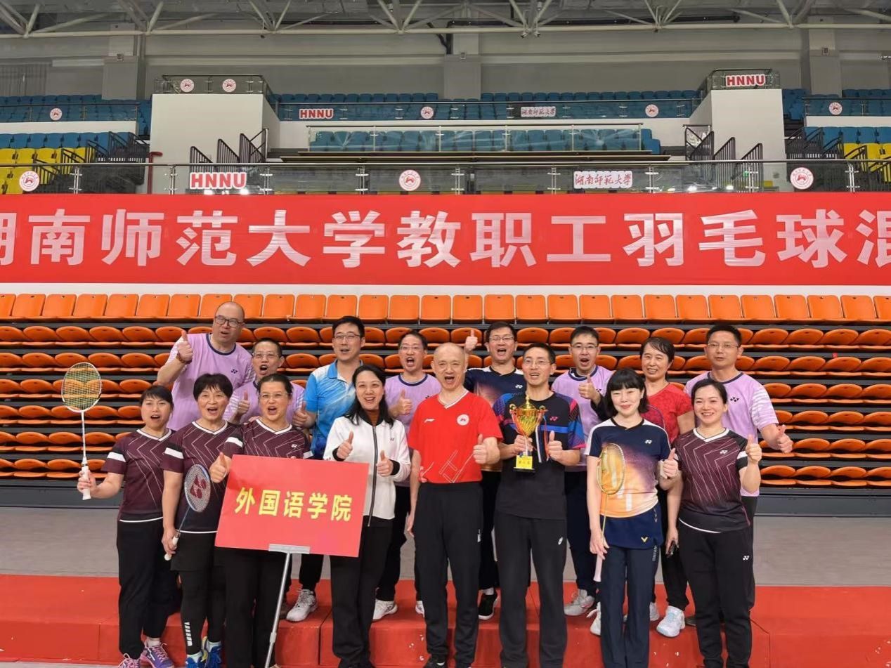 (通讯员 马纳克)在刚刚落幕的2025年湖南师范大学教职工羽毛球混合团体赛中,我院羽毛球队一路披荆斩棘,奋勇拼搏,最终喜获季军,创造了学院在该项赛事中的历史最佳成绩,展现了外院人昂扬向上的精神风貌。