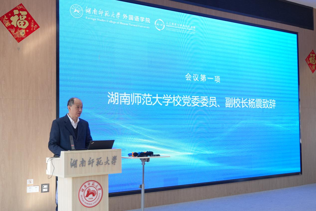 杨震在致辞中代表我校向长期以来支持实验室建设发展的各位专家学者致以诚挚欢迎与衷心感谢,并对实验室阶段性建设成效给予高度评价。他强调,抢抓人工智能技术革命机遇、提升国家国际传播能力,是高校服务国家战略的重要使命。学校将始终把实验室建设作为重点工作予以支持,期待在学术委员会的专业指导下,实验室在关键领域取得更多突破性成果,为国家战略需求贡献师大力量。