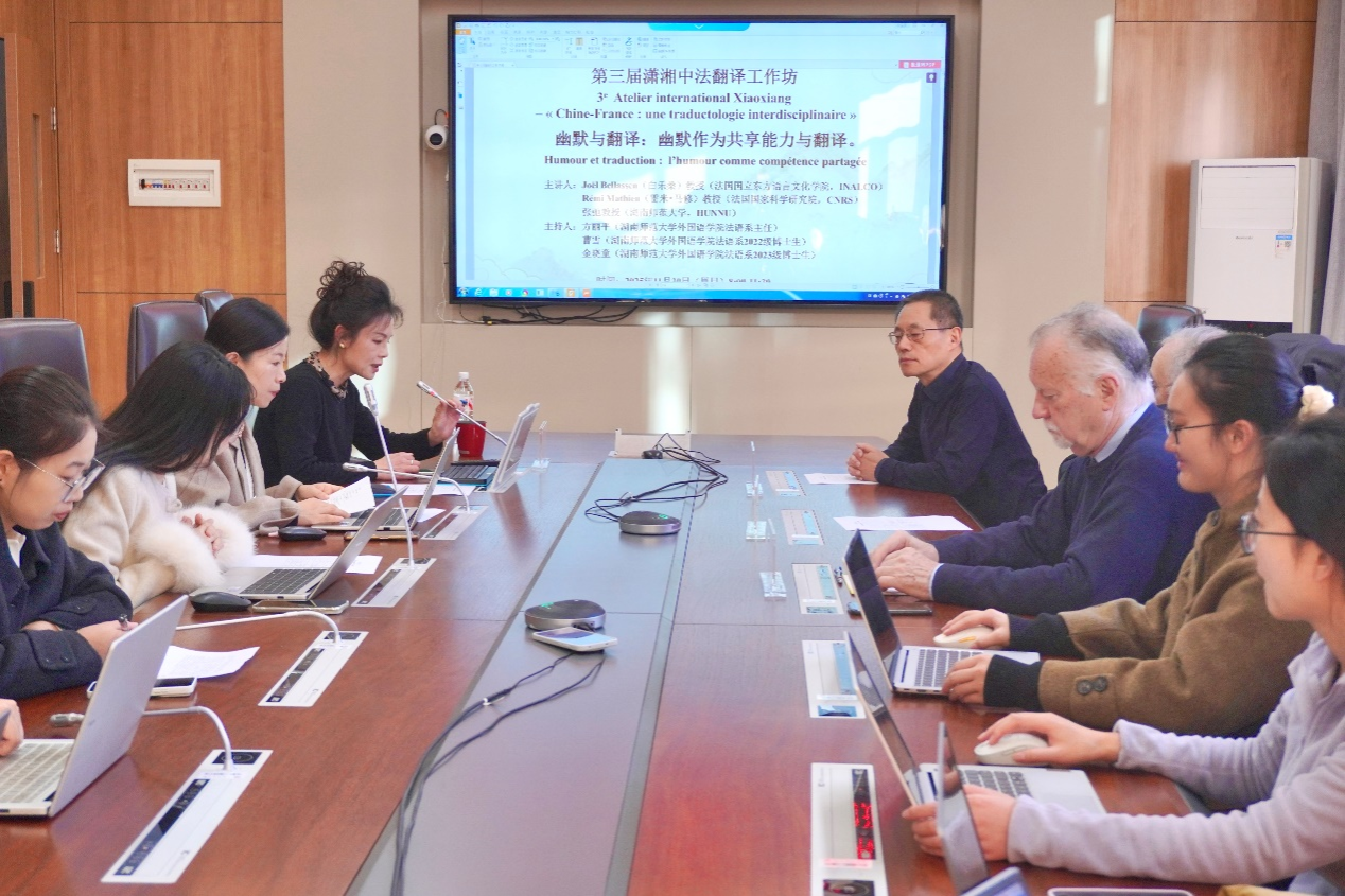 (通讯员 陈雨佳 陈丹 王淮星 仲佳洁)11月30日上午,湖南师范大学外国语学院法语系第三届潇湘中法翻译工作坊(3eAtelier international Xiaoxiang– « Chine-France : une traductologie interdisciplinaire »)在外国语学院腾龙楼204会议室成功举办。