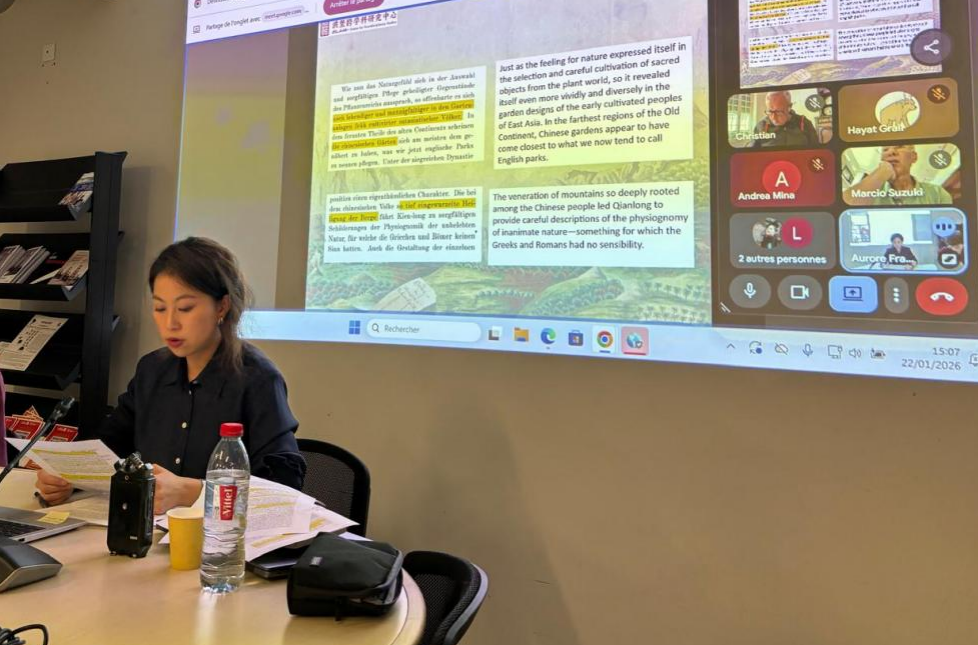 (通讯员 龙麒宇)近日,我院洪堡跨学科研究中心博士生龙麒宇,应法国巴黎新索邦大学研究院(Maison de la Recherche)邀请,在该院作了题为“Chinese Landscape Painting and Alexander von Humboldt’s Naturgemälde(中国山水画与亚历山大·冯·洪堡的自然画卷)”的学术报告。此次报告在欧洲研究委员会高级研究资助(ERC Advanced Grant, AdG)项目Oecologie的外部研讨会框架下举行,由项目负责人Stefanie Buchenau教授主持。