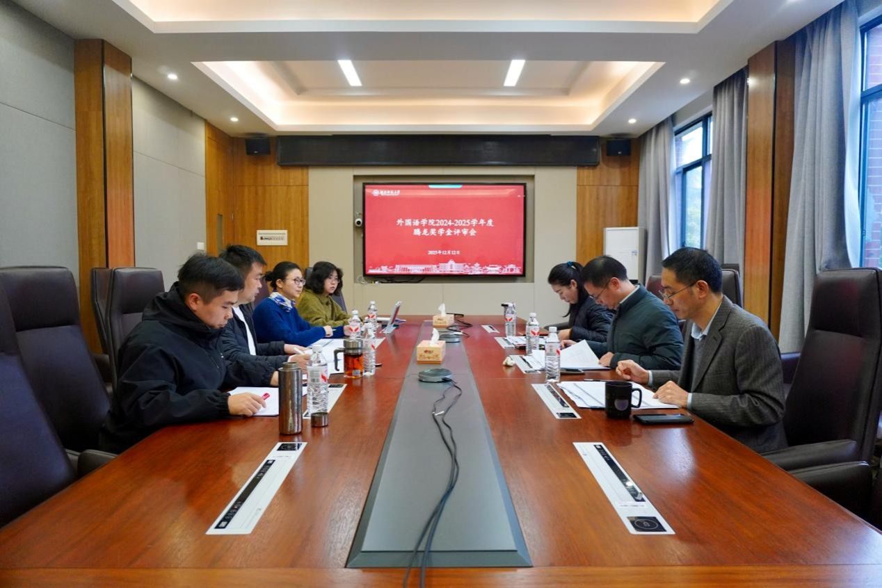 (通讯员 张鸿祖)12月12日,我院召开2024-2025学年度“腾龙奖学金”、“77级校友助学金”、“张文庭-申恩荣励志奖学金”评审会,我院党委书记沈贤岚,副院长梁斌,党委副书记莫南,研办、学工办各位老师参与评审。