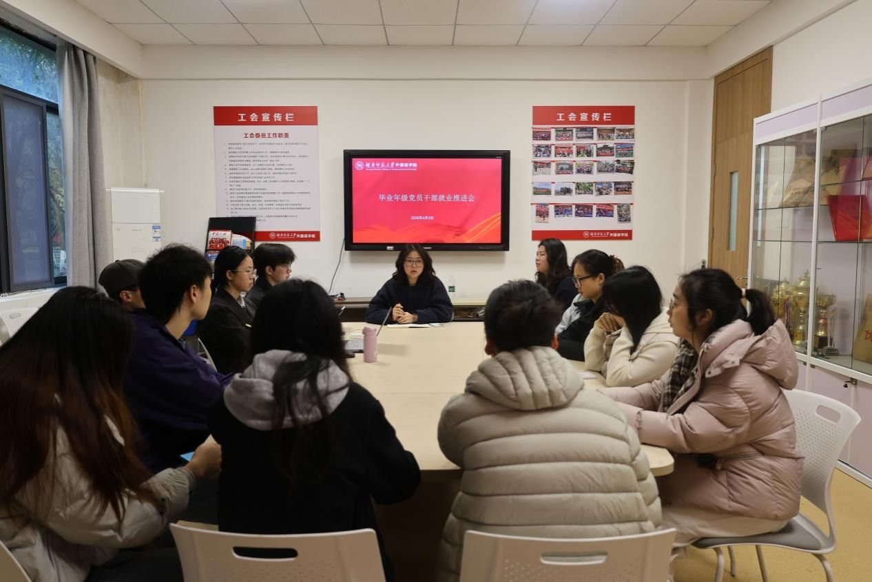 (通讯员 徐若曦)为扎实做好毕业生就业推进工作,切实助力我院毕业生明晰发展方向、落实就业去向,4月3日中午,我院于腾龙楼110会议室召开毕业年级党员干部就业推进会,2022级各班党员干部参与此次会议。会议由我院2022级辅导员王昭春主持。