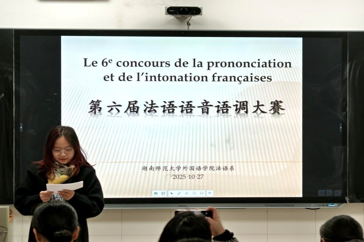 (通讯员 吴晨希)10月27日下午,我院第六届法语语音语调大赛于至善楼106室顺利举行。此次大赛邀请法语系教师王芳、陈静、陈丹、曾咏柳、宁婧思、曹蓓芳担任评委,由2024级本科生毕君婕同学主持。2024级共30名本科生参赛,2023级部分本科生受邀列席观赛并拍照记录。