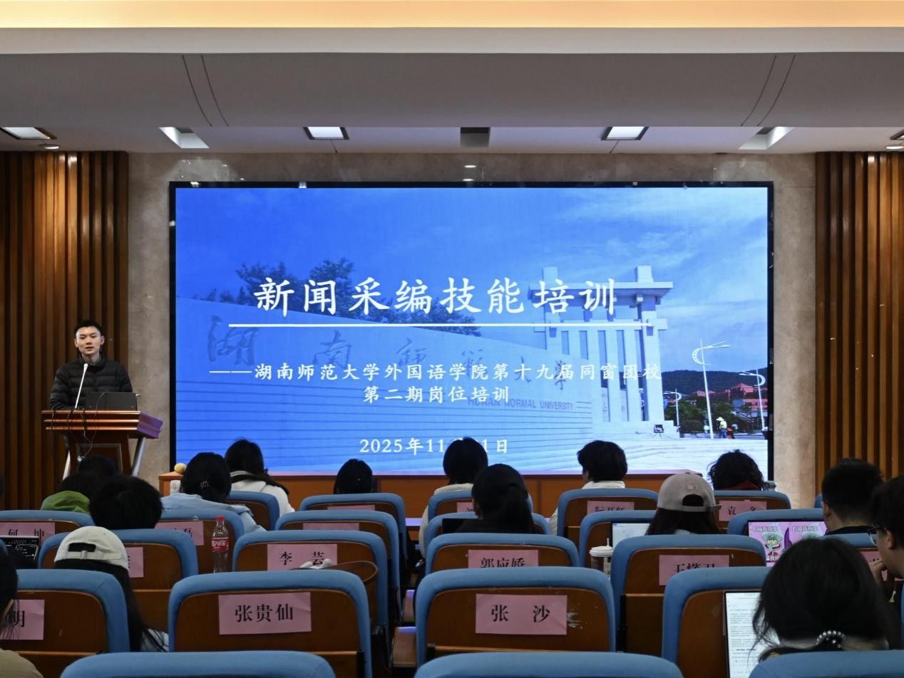 (通讯员 王蕾西 何梦怡 邓遥遥)2025年11月21日,我院于腾龙楼515报告厅成功举办了“新闻编辑能力培训”主题团课,由外国语学院学工办老师胡云天和湖南师范大学前任党委宣传部新闻网学生站长李欣茹担任主讲人,主讲人围绕新闻稿件的写作要点和照片拍摄规范以及投稿注意事项展开深入讲解,帮助团干部熟练掌握采编技能,提升素养。