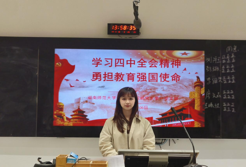 (通讯员 李湘)为深入学习贯彻中国共产党第二十届中央委员会第四次全体会议精神,引导全体党员深刻领会“十五五”规划核心要义,切实增强投身教育强国建设的责任感与使命感,2025年11月5日,外国语学院研究生第一党支部在腾龙楼604教室成功举办”学习四中全会精神,勇担教育强国使命“主题党日活动。