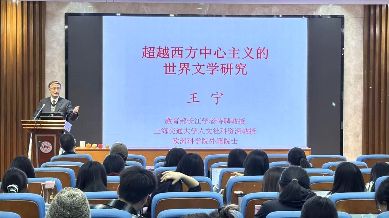 11月8日下午,“超越西方中心主义的世界文学研究”讲座于腾龙楼515举办。讲座由上海交通大学人文社会科学资深教授王宁主讲,由外国语学院公共外语部主任梁斌主持。