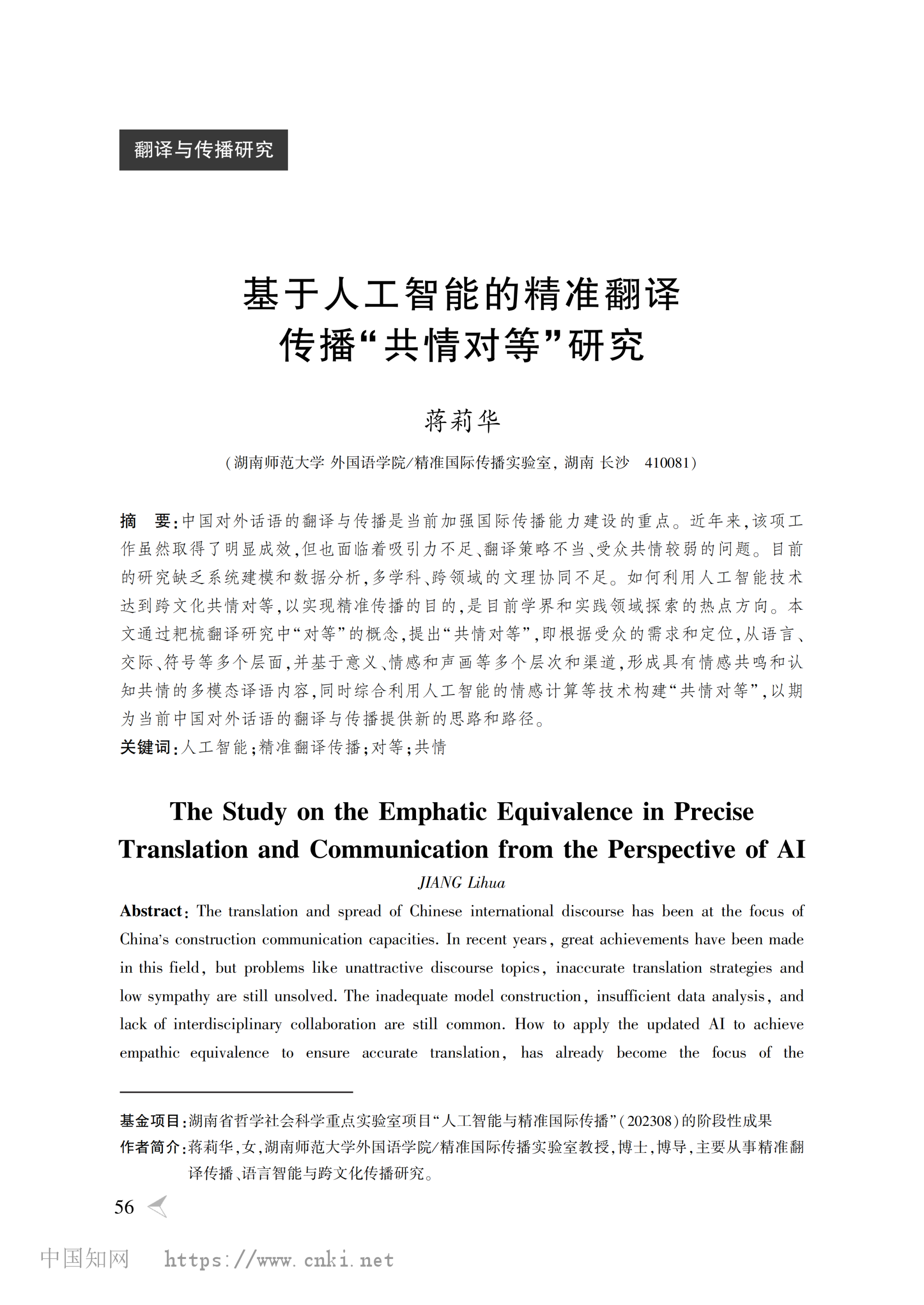 蒋莉华 | 基于人工智能的精准翻译传播“共情对等”研究